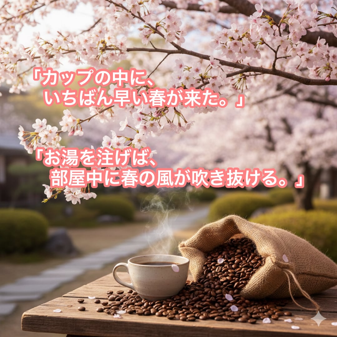春限定のブラジル さくらブルボンを、メインにしたブレンドを作成いたしました。エチオピアの清々しく華やかな香りが鼻を抜け、さくらブルボン由来の完熟チェリーのような柔らかな甘みが、まるで春の陽だまりのように優しく口いっぱいに広がります。